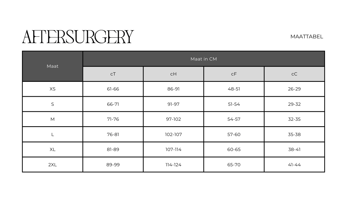 De juiste maat kunt u bepalen aan de hand van de maattabel. Wenst u hierbij hulp of advies, contacteer ons dan via mail, telefoon of chat. Wij staan graag voor u klaar.