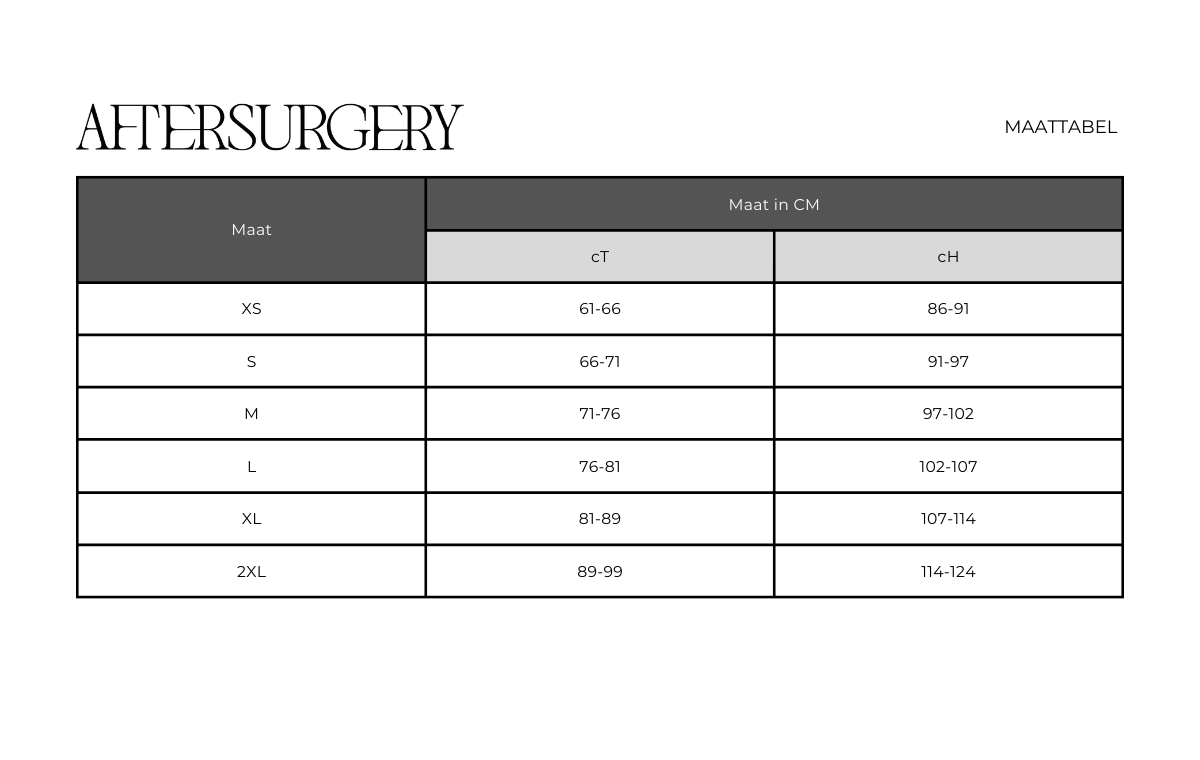 Raadpleeg de maattabel om de juiste maat te bepalen. Wenst u hierbij hulp of advies, contacteer ons dan via mail, telefoon of chat. Wij staan graag voor u klaar.