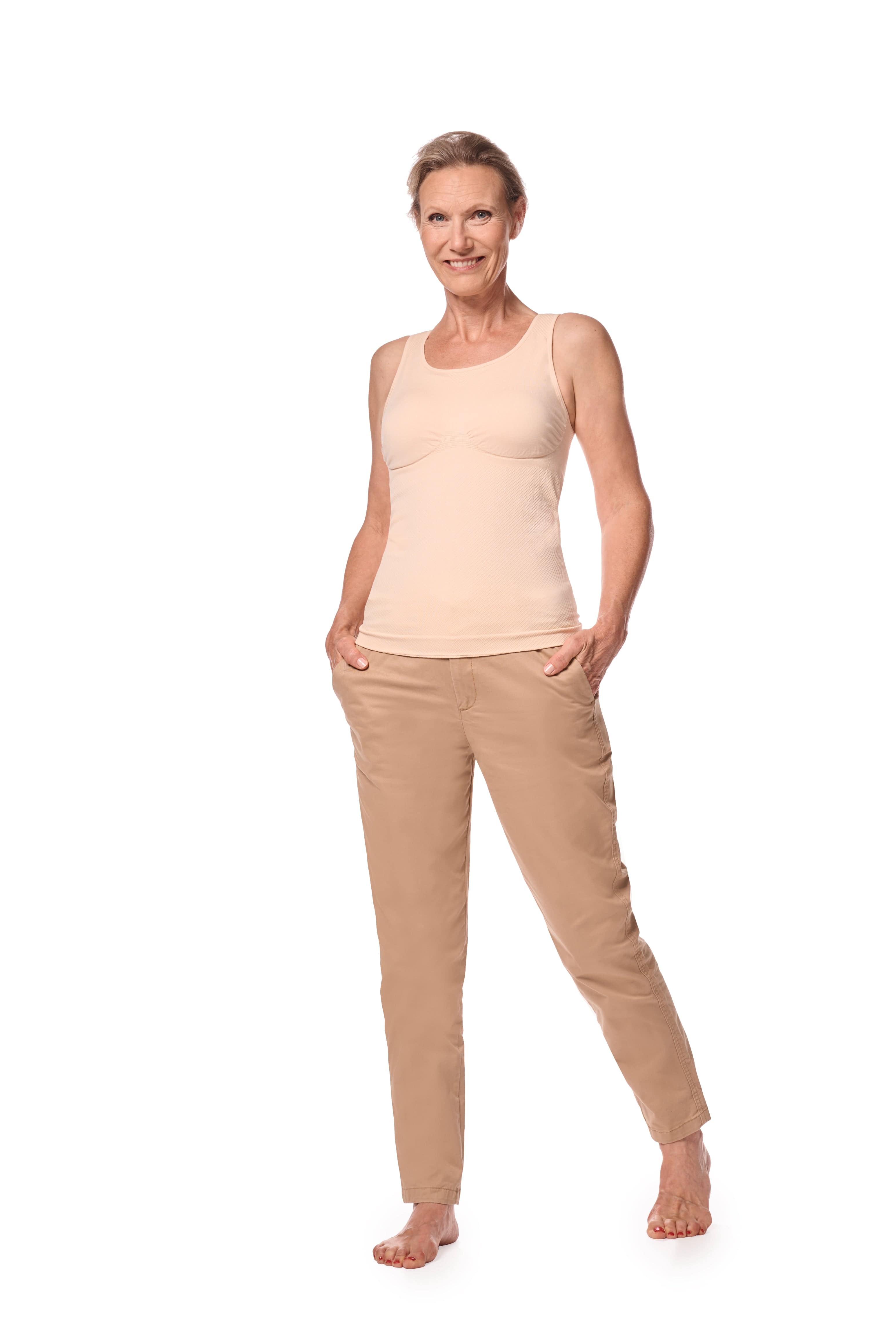 De Liane prothese top maakt deel uit van ons speciale assortiment textiel en beha’s die druk verlichten bij lymfoedeem. Bewegen is van groot belang voor de therapie en ook voor de profylaxe van een lymfatische aandoening. Deze top ondersteunt actief herstel en is ideaal om te dragen tijdens lichaamsbeweging of als comfortabele slaaptop.