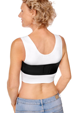 Voorzien van een zachtere, verstelbare klittenbandsluiting aan de voorzijde voor een precieze en comfortabele pasvorm. Ontworpen voor stevige bevestiging aan compressiebeha’s via het geïntegreerde bevestigingssysteem.