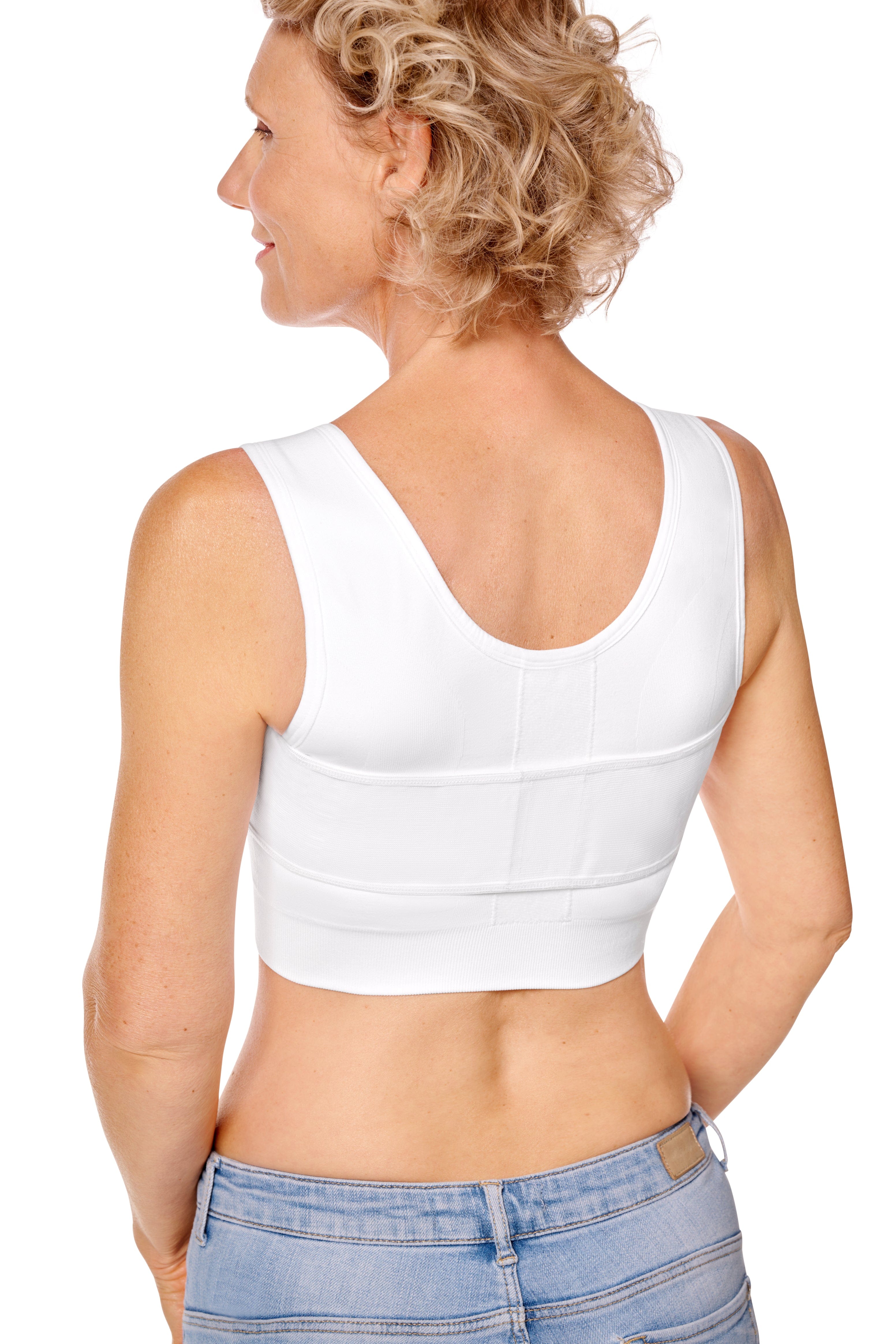 Het vernieuwde anatomische ontwerp volgt nauwgezet de vorm van het bovenlichaam en biedt een gerichte compressie op de bovenborst, inclusief het gevoelige gebied onder de oksel. Gemaakt van rekbare, stevige stof die een perfecte individuele pasvorm mogelijk maakt. Dankzij de zachtere klittenbandsluiting aan de voorzijde kan de compressieband eenvoudig en comfortabel worden aangepast aan het lichaam.
