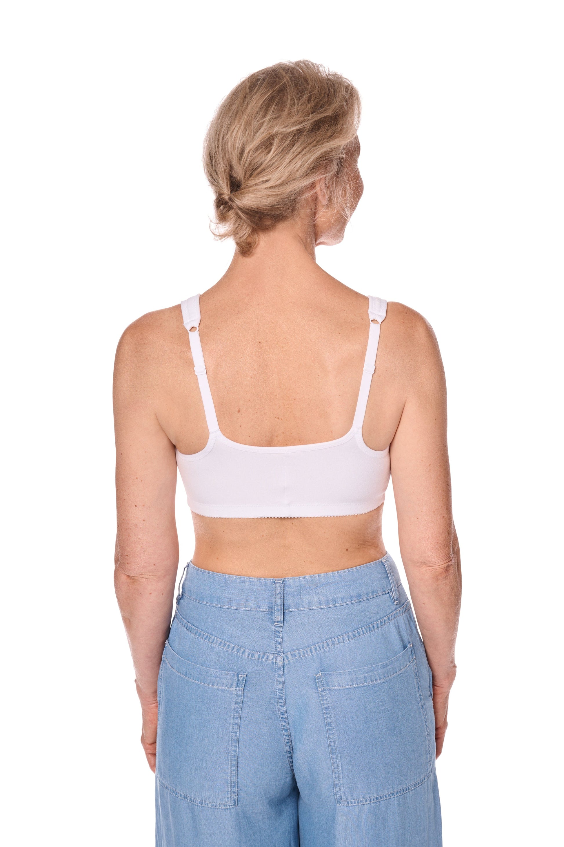 Verkrijgbaar in zwart, zand, wit en grijs. De brede badstof onderband en het achterpand in topmodel zorgen voor extra comfort, zonder knelling of druk. Brede, zachte schouderbandjes met luchtkussentjes ontlasten de schouders en zijn achter verstelbaar. Dankzij de ingebouwde katoenen hoesjes is de beha geschikt voor het dragen van een borstprothese aan één of beide zijden – zowel in de beginfase als voor langdurig gebruik.