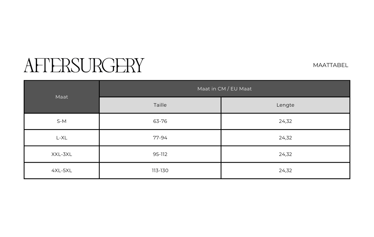 Geschikt voor gebruik in de eerste fase en tweede fase van herstel na een operatie, zoals aanbevolen door uw plastisch chirurg. Geschikt voor gebruik na abdominoplastie en abdominale liposuctie.