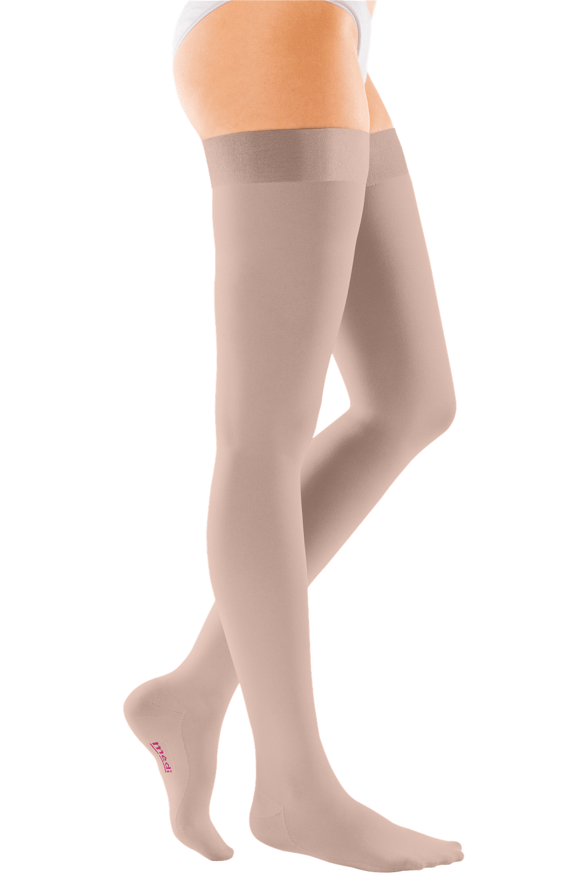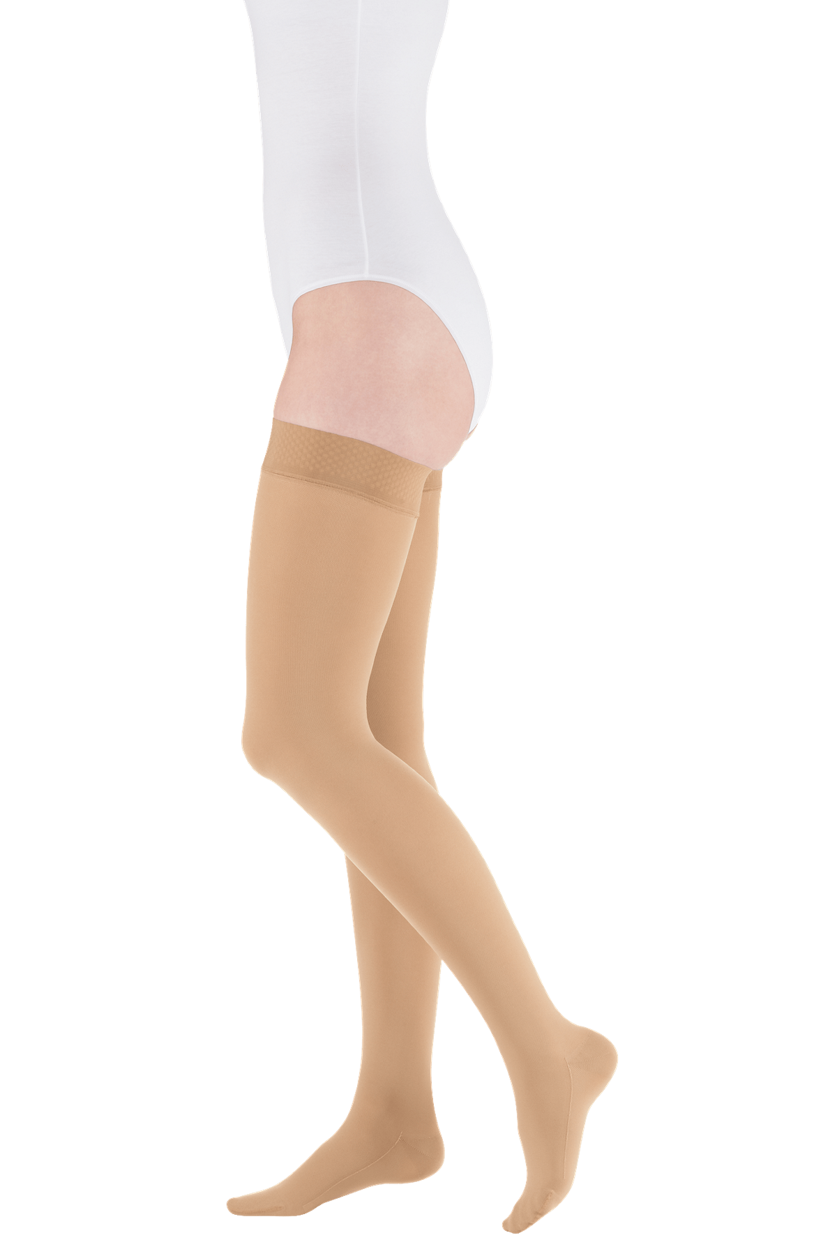 De Mediven® Comfort AG dijbeenkous is ontwikkeld voor de behandeling van veneuze aandoeningen en oedeem in het gehele been tot aan het dijbeen. De zachte en gelijkmatige drukverdeling ondersteunt de afvoer van vocht, vermindert zwelling en helpt klachten zoals vermoeide, zware of gespannen benen te verlichten. Dankzij het soepele en comfortabele materiaal is deze kous zeer geschikt voor dagelijks gebruik.