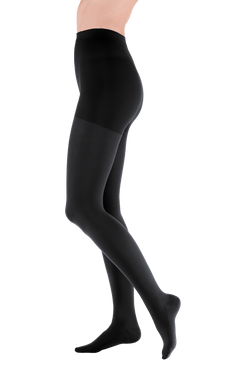 De Mediven® Comfort panty is vervaardigd uit een uitzonderlijk zacht, rondgebreid materiaal dat het aan- en uittrekken vergemakkelijkt. De fijne structuur voelt prettig aan op de huid en biedt extra loop- en draagcomfort dankzij de dubbele breitechniek. Het broekgedeelte (gusset) is anatomisch gevormd en variëert afhankelijk van de maat van een standaard kruisstuk tot een extra brede versteviging voor meer stabiliteit. Het materiaal is ademend, huidvriendelijk en gecertificeerd volgens de OEKO-TEX Standard 100.