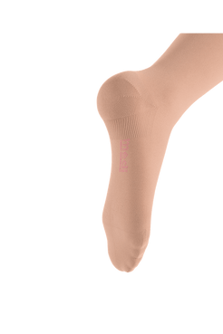 De kous is leverbaar in diverse natuurlijke kleuren. Dankzij de anatomische pasvorm sluit de kous nauw aan van enkel tot dijbeen, met een zachte en stabiele bovenboord die niet afzakt en geen afdrukken veroorzaakt. De stevige structuur zorgt voor een betrouwbare ondersteuning bij lichte tot zwaardere klachten.