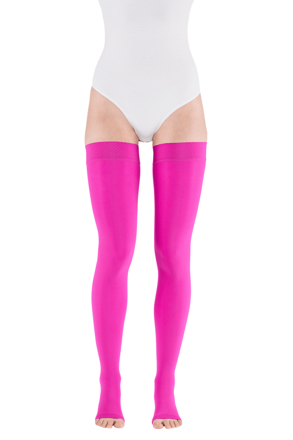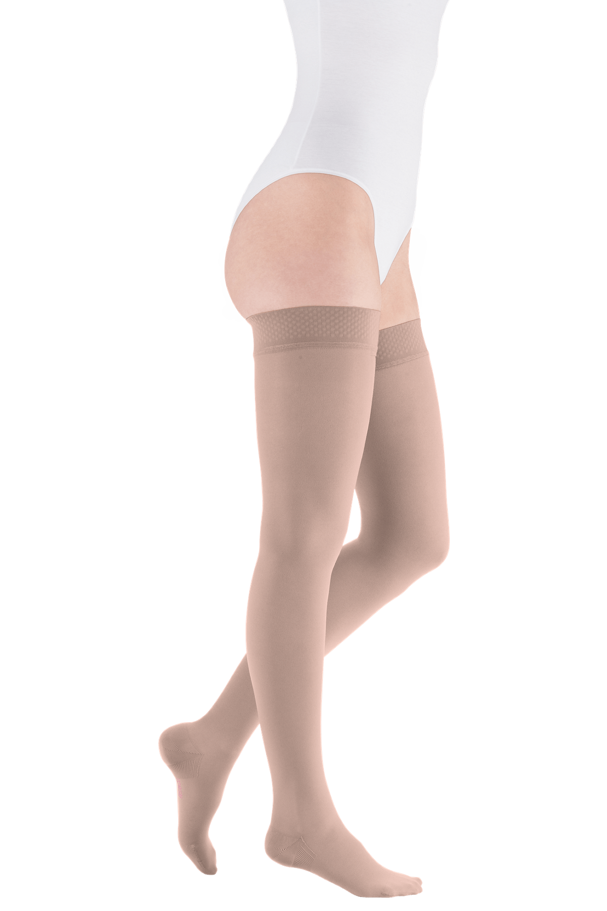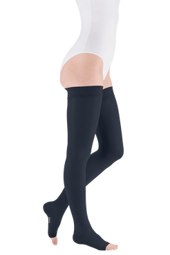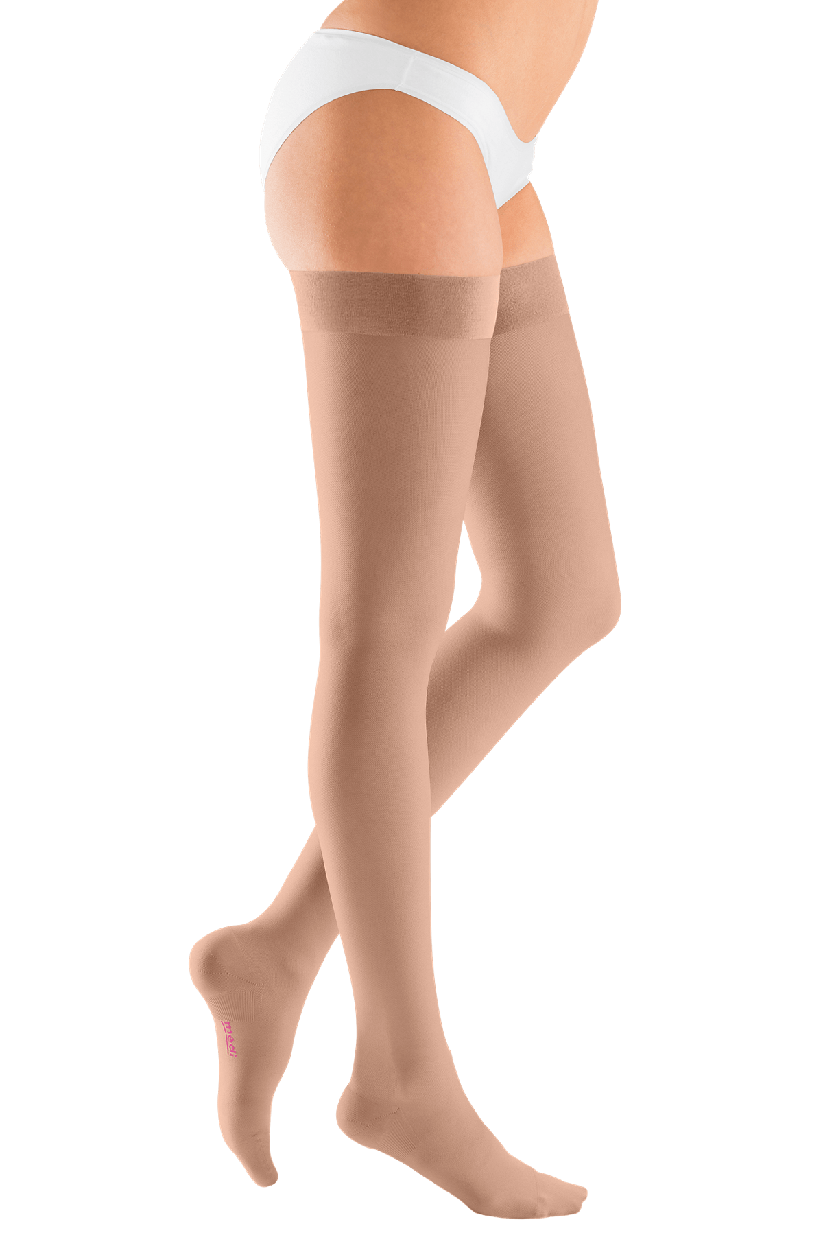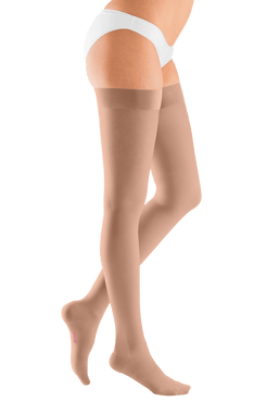 De Mediven® Plus AG dijbeenkous is verkrijgbaar in meerdere uitvoeringen, zodat deze precies aansluit op uw therapiebehoefte: