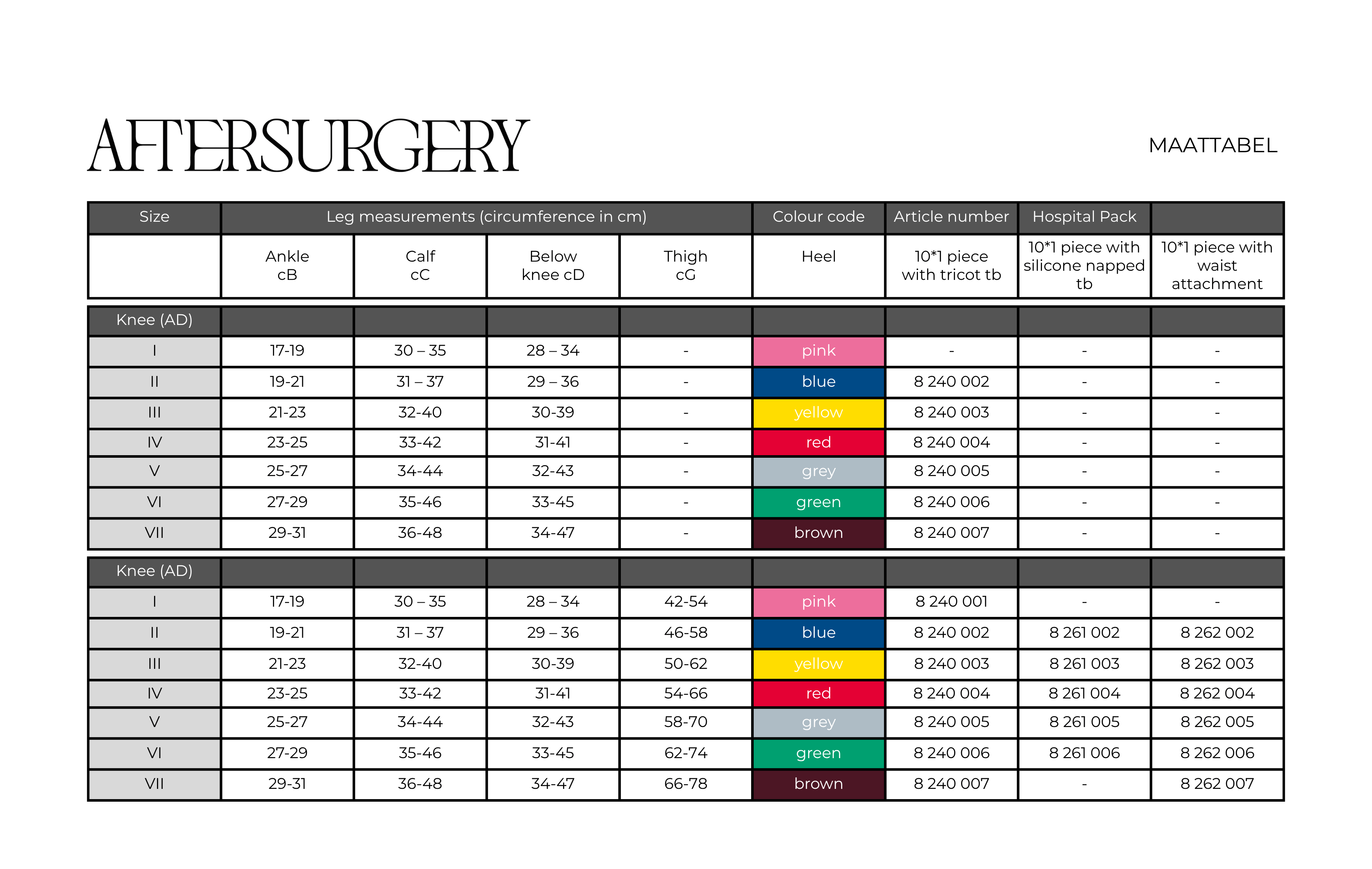 Ondanks deze informatie wordt u geadviseerd uw maat te bepalen in overleg met uw behandelend arts.