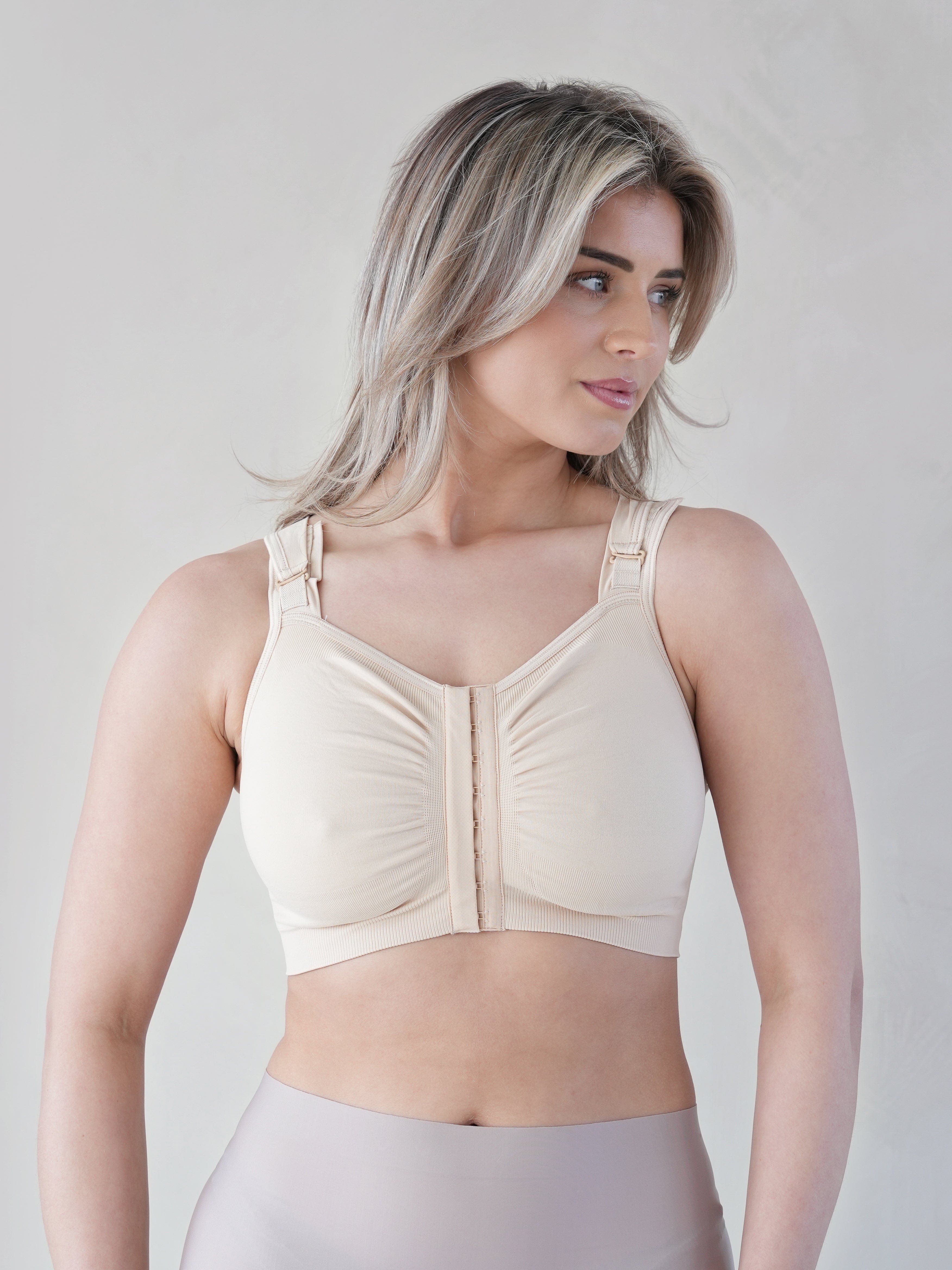 De Mary Carefix compressiebeha is speciaal ontworpen voor postoperatieve nazorg na borstverkleining, borstvergroting, borstlift, borstreconstructie en borstsparende ingrepen. Het biedt stevige compressie (level 2) om optimale ondersteuning en comfort te garanderen tijdens het herstel. De beha is gemaakt van zachte, ademende microfiber die huidirritatie minimaliseert.