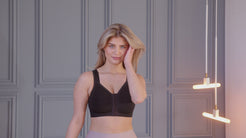 Hoogsluitend decolleté, geïntegreerde versteviging in de cups en de achterzijde van de compressiebeha. Pockets voor tijdelijke protheses. De compressiebeha is verkrijgbaar in de kleuren zwart, wit en beige.
