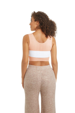 Voorzien van een klittenbandsluiting. De rugflap maakt een veilige bevestiging mogelijk aan de compatibele compressiebeha’s van Amoena.