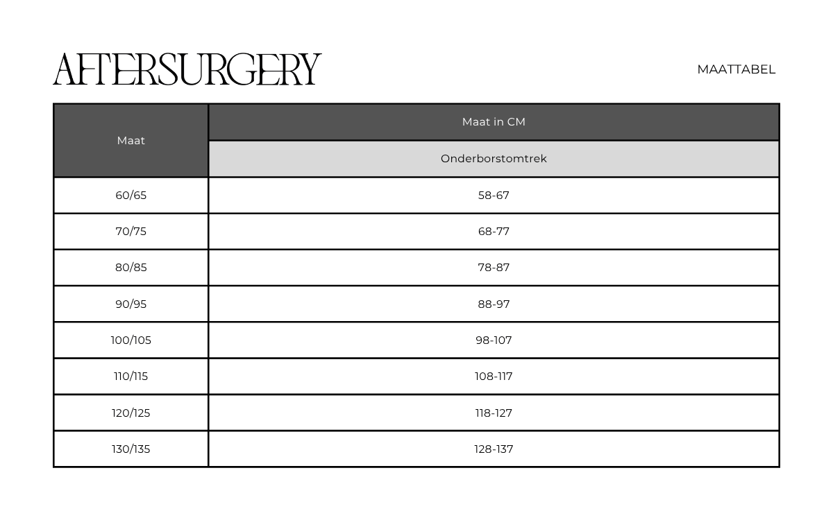 De compressieband is beschikbaar in een brede maatvoering van 60 cm tot 135 cm. De juiste maat kunt u bepalen aan de hand van de maattabel.