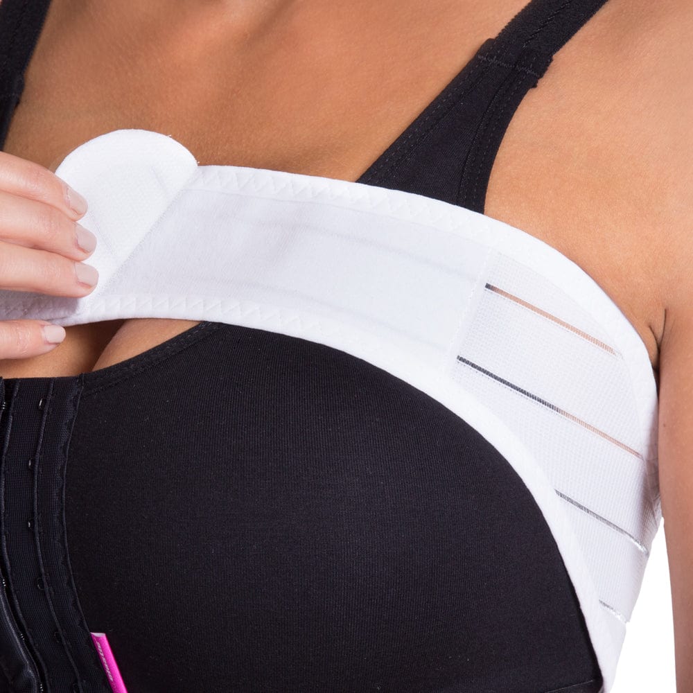 Geschikt voor gebruik in de eerste fase van postoperatieve zorg na borstchirurgie, in combinatie met een compressiebeha van Lipoelastic. De borstband is ontworpen om borstimplantaten te stabiliseren en is ideaal voor de eerste postoperatieve fase. Het is belangrijk om de borstband alleen te dragen op advies van uw arts of plastisch chirurg.