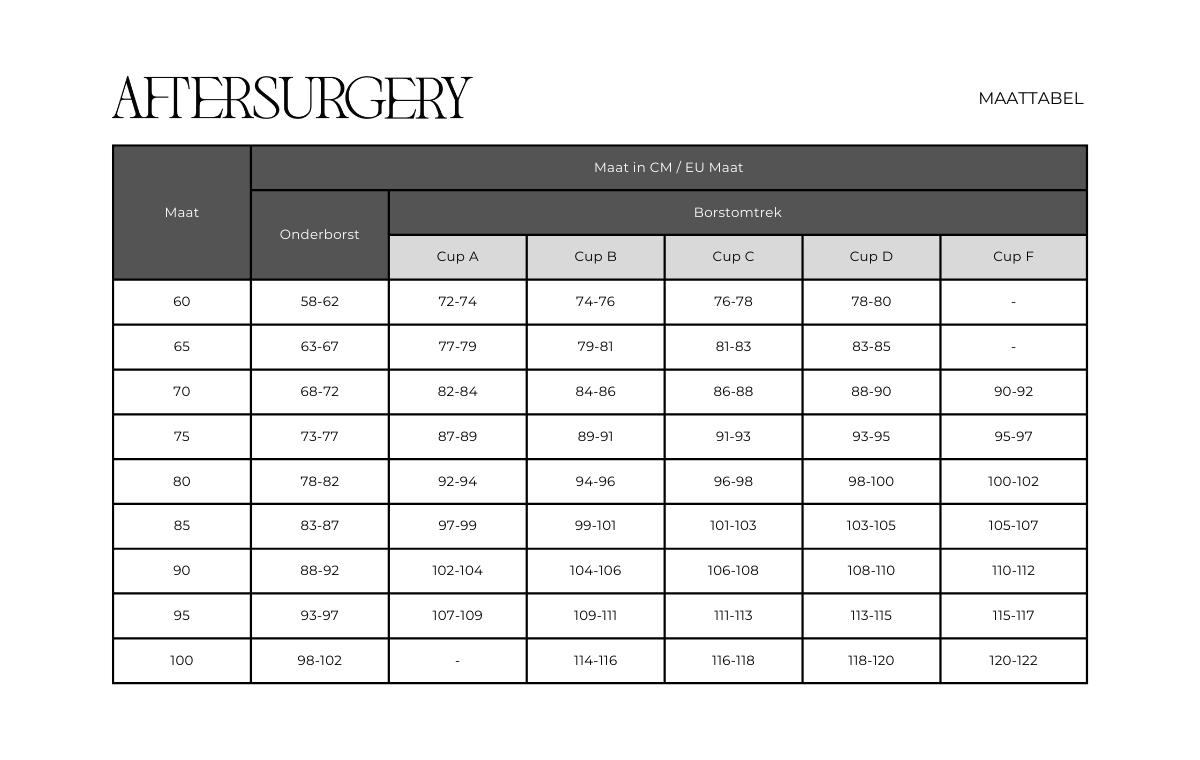 Ondanks deze informatie wordt u geadviseerd uw maat te bepalen in overleg met uw behandelend arts.