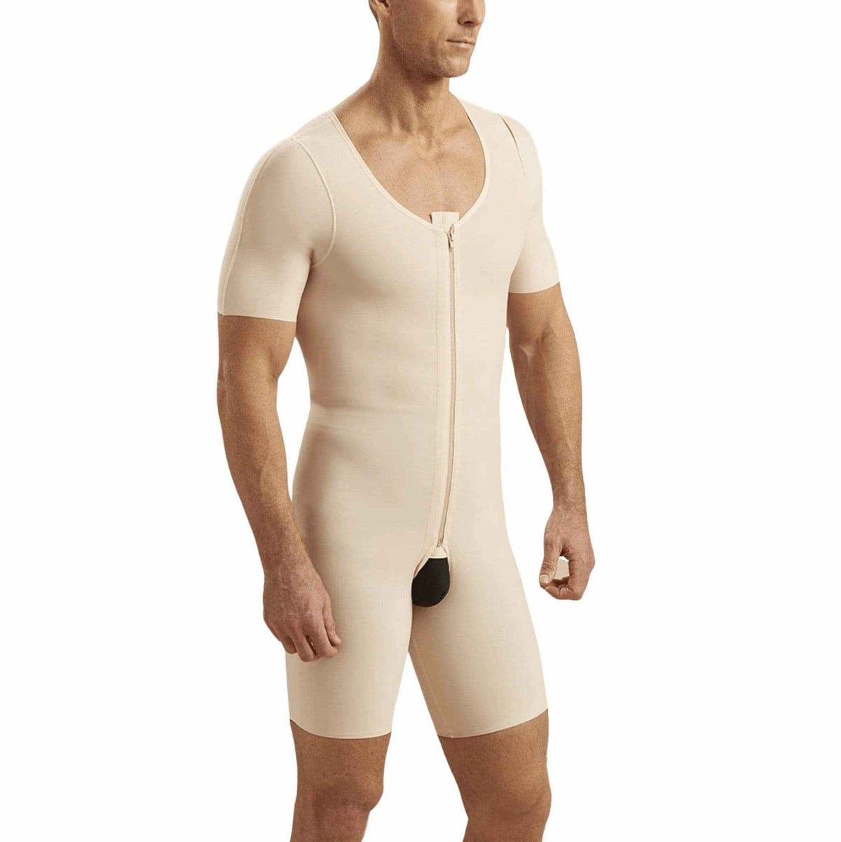 Het MBSS compressiepak heeft een comfortabele ronde hals en korte mouwen, wat zorgt voor maximale bewegingsvrijheid. De gewatteerde ritssluiting aan de voorkant maakt het eenvoudig aan- en uittrekken mogelijk. Het kledingstuk heeft een hygiëneopening in het kruis en beenbedekking tot net boven de knie met gripmateriaal om het op zijn plaats te houden.