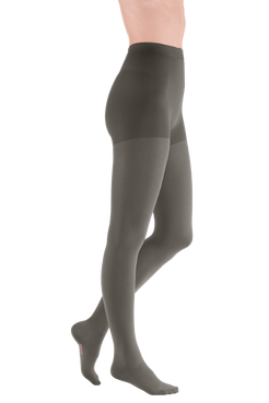 De Mediven® Comfort panty is vervaardigd uit een uitzonderlijk zacht, rondgebreid materiaal dat het aan- en uittrekken vergemakkelijkt. De fijne structuur voelt prettig aan op de huid en biedt extra loop- en draagcomfort dankzij de dubbele breitechniek. Het broekgedeelte (gusset) is anatomisch gevormd en variëert afhankelijk van de maat van een standaard kruisstuk tot een extra brede versteviging voor meer stabiliteit. Het materiaal is ademend, huidvriendelijk en gecertificeerd volgens de OEKO-TEX Standard 100.